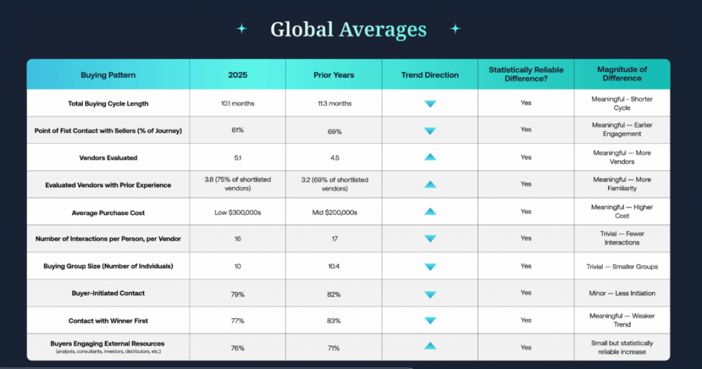 - 12 searches before engagement: Demand Gen Report finds B2B buyers do 12 searches on average before landing on a vendor’s site, with an average of 15 interactions with the winning vendor. If your content isn’t mapping to every touchpoint in that journey, you’re invisible.