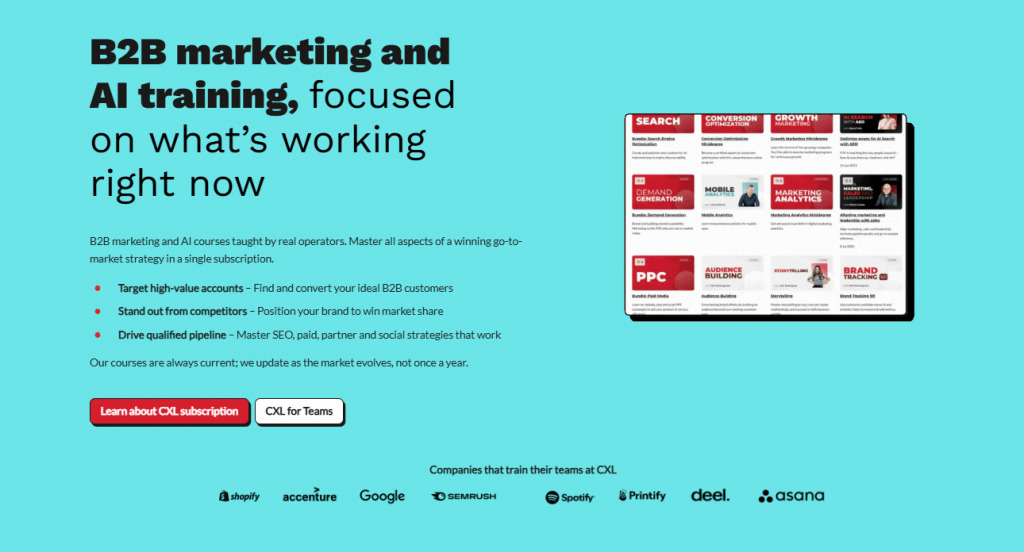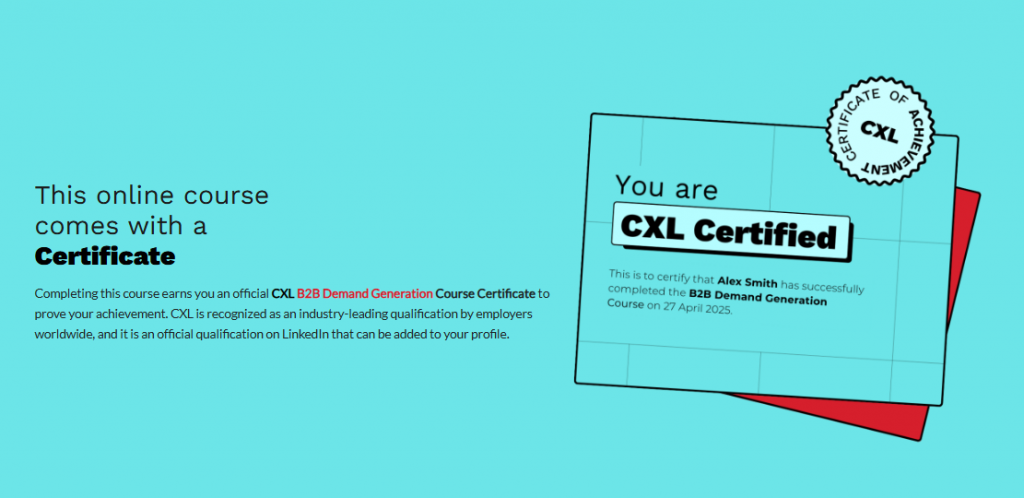When CXL teaches paid acquisition or funnel optimization, they’re training marketers to become the people who can justify budget increases with concrete data and proven methodologies.