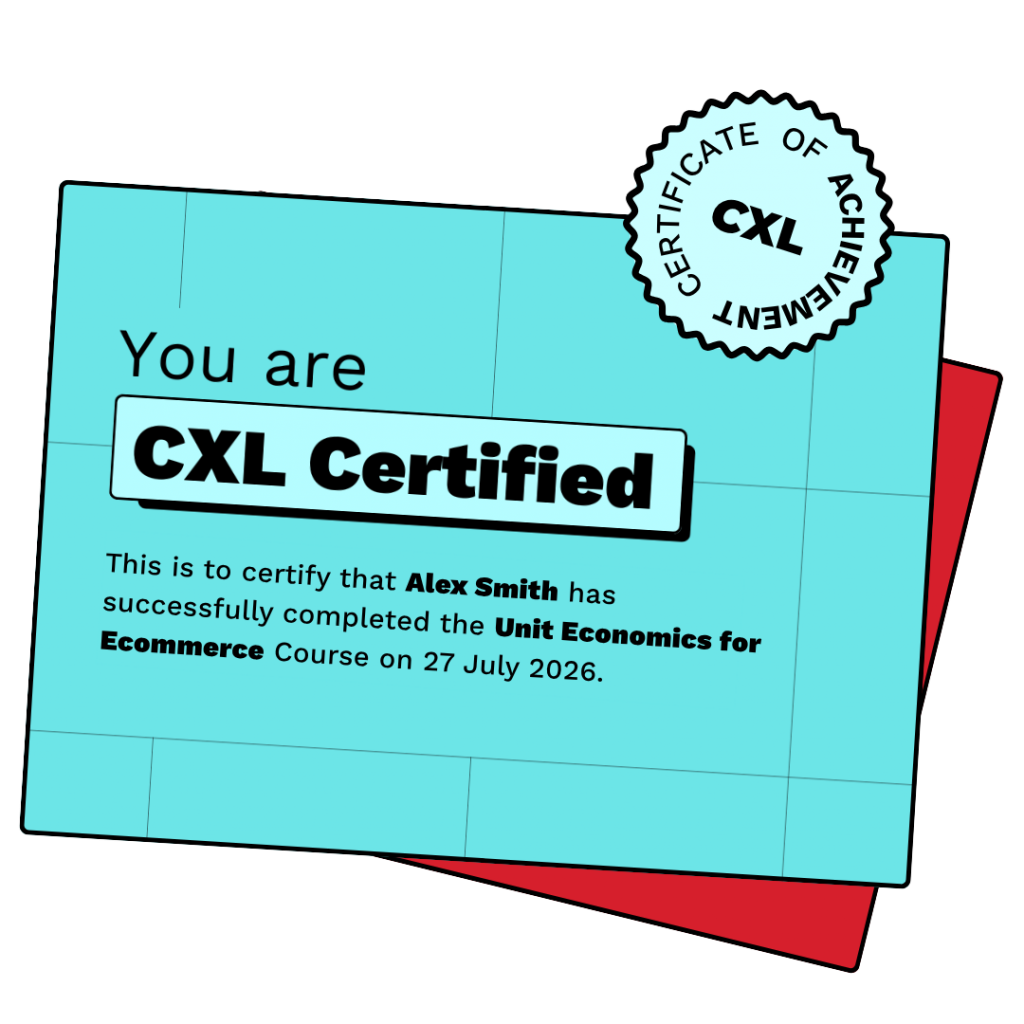 Completing this course earns you an official CXL Unit Economics for Ecommerce Course Certificate to prove your achievement. CXL is recognized as an industry-leading qualification by employers worldwide, and it is an official qualification on LinkedIn that can be added to your profile.