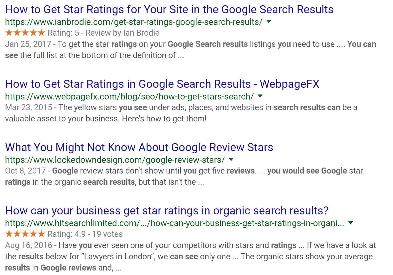 You know when you search for something on Google sometimes you see review stars next to a search result?